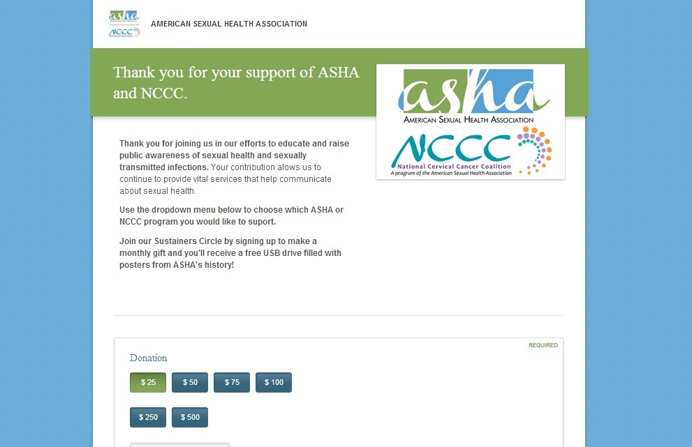 The generosity of many donors enables the National Cervical Cancer Coalition (NCCC) to address the cervical health needs of women across the United States and internationally. When you donate to the National Cervical Cancer Coalition, you help support NCCC’s programs and services. NCCC is a program of the American Sexual Health Association (ASHA), a registered 501(c)(3) tax-exempt organization, and contributions to NCCC are tax-deductible in the U.S. If your employer has a matching gift program, you may be able to double your gift to NCCC; please check with your human resources department. NCCC also accepts gifts of stock, which may offer you significant tax advantages.