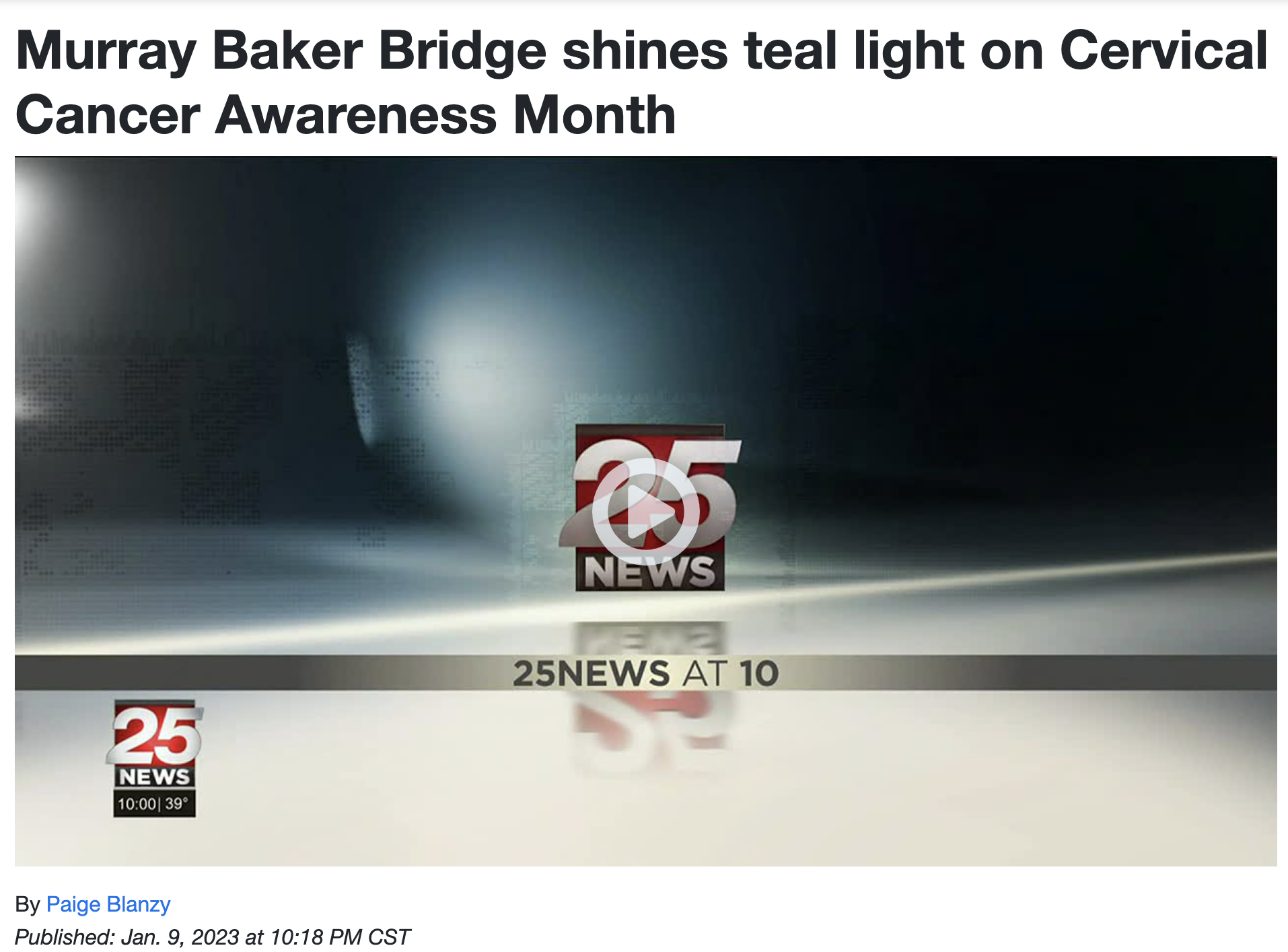 Jolene and the Peoria Chapter work to raise awareness of cervical cancer prevention, from one-on-one discussions to grand events, like lighting up the Murray Baker Bridge in teal—the signature color of cervical cancer advocacy.